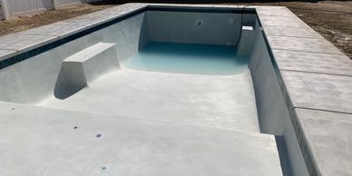 Plaster is the final step before the pool is filled with water. Customers can choose from a variety of pool finishes including: white plaster, quartz, and pebble.